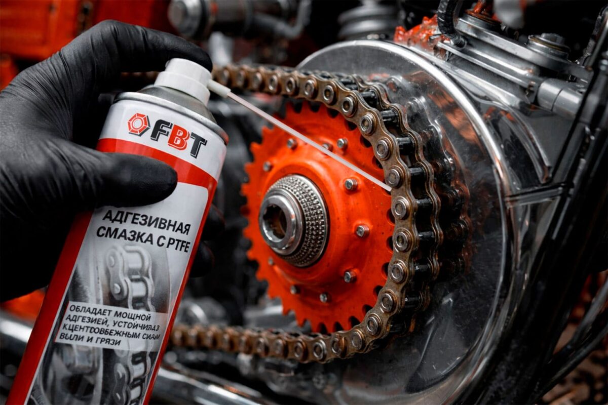 Высокоэффективная адгезивная смазка с PTFE F405 для цепей мотоциклов, велосипедов, оборудования, тросов, подшипников, а также цепей всех типов, шестерен и червячных передач, шарниров и муфт.